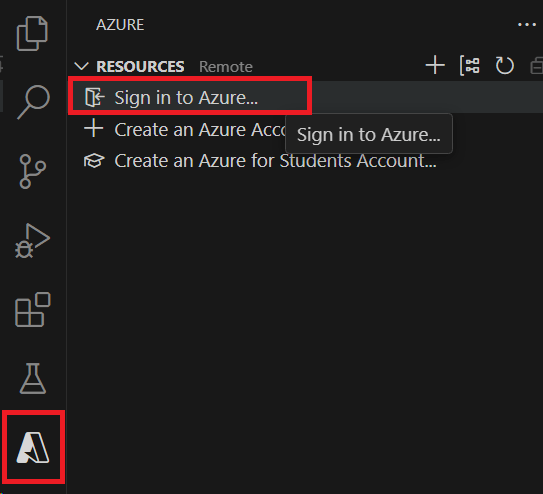 Once installed, you should see an Azure icon pop up on the left hand panel, click on this and click ‘Sign in to Azure’