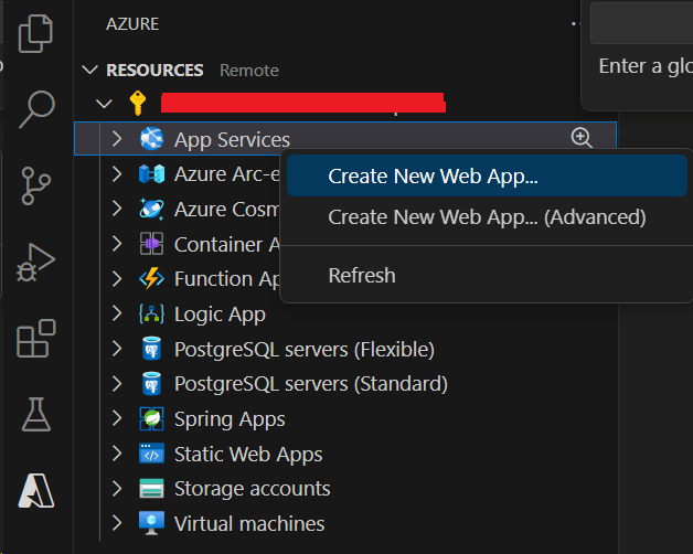Once signed in, you should be able to see your subscriptions in VS Code. Right-click on App Services > Create new Web App