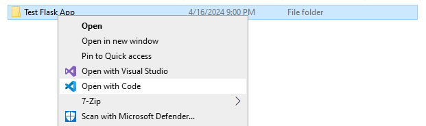 Once your application is ready, from file explorer right click the application and click ‘Open with code’