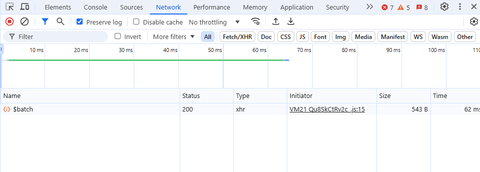 The first thing you will notice is that this isn’t a request directly to Graph and it is not even a POST request, it just calls the batch API.