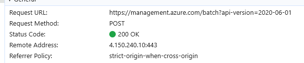 Once clicking ‘Create’ you’ll see a POST request in your browser just like before, also to management.azure.com but to the batch API similar to how it works in the portal.
