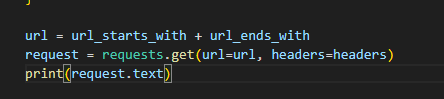 Now we are going to form the request, you can see in the request from the browser that the method was set to ‘GET’, so we will make a GET request and we will combine the url_starts_with and url_ends_with to make the request and add the headers and just print the response.