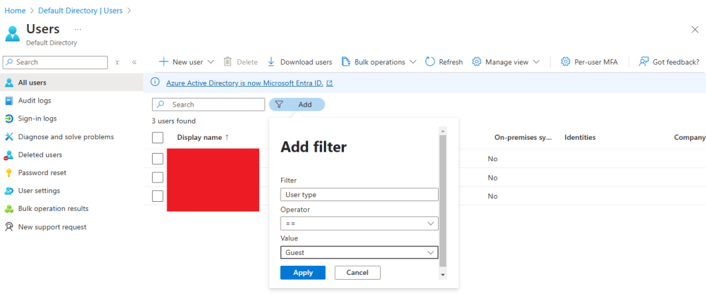 Now Microsoft does provide documentation on how to list users using the Graph API. However in lots of cases it’s hard to follow, and still takes a while to follow. In this example, we are going to get a list of all guests accounts in the organization using the Entra ID portal, and we are going to inspect the HTTP requests.